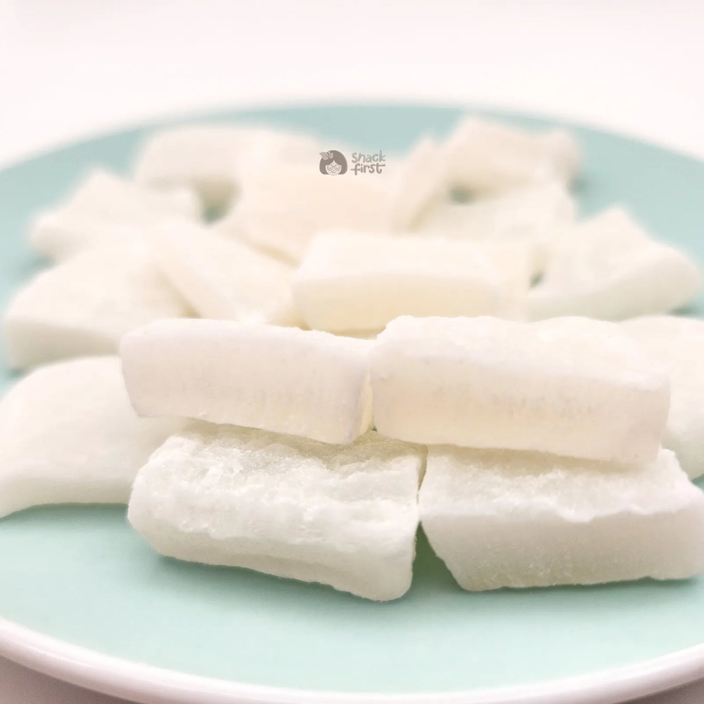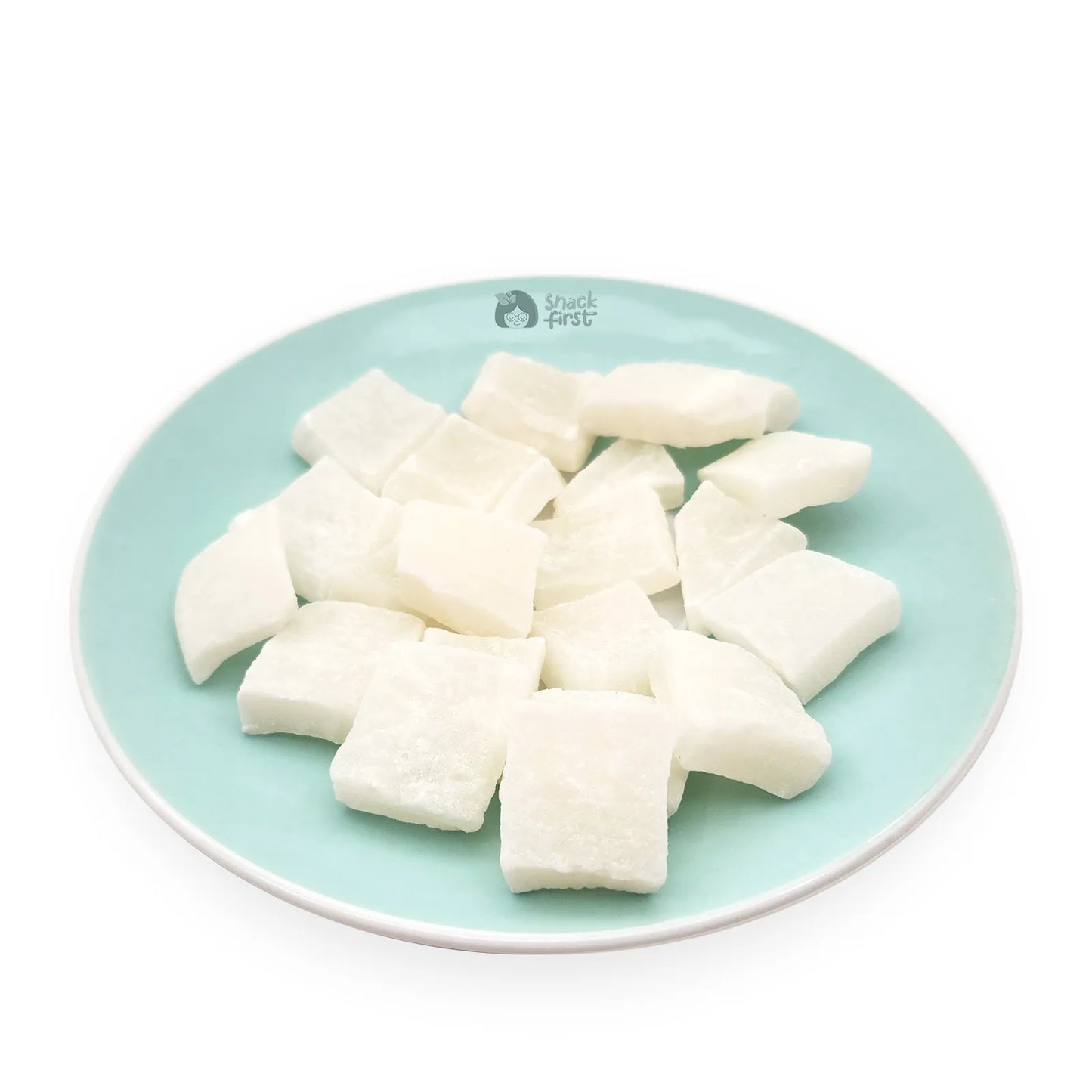 Coconuts are full of health benefits like dietary fibre, vitamins and minerals. Coconut water helps to replenish your electrolytes and the coconut fruit is sliced into chunks to give coconut snacks. These coconut chunks are delicous and incredibly addictive as a healthy snack. Pair them with coconut water and you have a healthy snack for high tea!