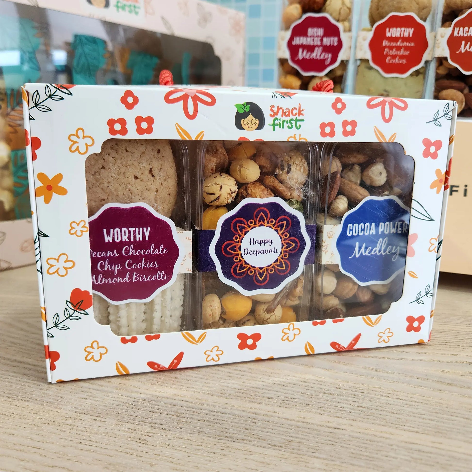 对于个别零食盒,您可以在此处查看清单: 定制零食盒如需定制重量和口味,请致电6684 1769 联系我们或发送电子邮件至 更多详情请联系@snackfirst.com