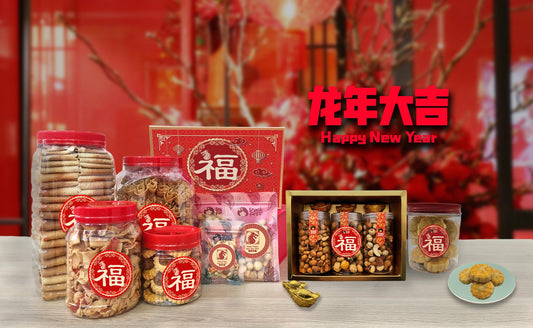 中国新年,又称春节或农历新年,是世界各地家人团聚庆祝的节日。穿红衣、燃放爆竹、舞狮、抛鱼生等都是这个节日月份的传统。人们相信这些传统可以驱邪避凶,为即将到来的新年带来财富和繁荣。 人们还会在家里准备各种美味小吃和点心,邀请亲朋好友来家里聚餐。 以下是一些最受欢迎的中国新年小吃: 1. 菠萝挞:与开斋节的粿挞类似,菠萝挞是一口大小的黄油酥皮糕点,内馅是香甜的菠萝酱。菠萝象征着财富和繁荣,因此在农历新年期间很受欢迎。菠萝呈橙色/金色,寓意吉祥,形状有点像金元宝。 2. 坚果和种子:花生、腰果和杏仁等坚果是农历新年聚会的常见食物。它们象征着多子多福、长寿富贵,也是佐餐佳肴。阳光腰果和烤开心果是经典佳肴,但如果您想寻找一些独特的口味,沙爹脆腰果、蜜汁芝麻和麻辣花生一定能满足您的味蕾。 3. 情书薄饼(Kueh Kapit) :薄脆卷饼,通常用椰奶调味。它是农历新年最受欢迎的小吃,象征着来年好运连连、甜蜜甜蜜。我们有原味、香兰叶味、花生味,甚至还有鸡丝味。 4. 脆片(虾条脆片) :如何用不辣的食物招待孩子?给他们这些脆片,他们肯定会想吃掉整瓶!脆片酥脆的,用的是真正的虾,鲜味十足。香脆可口,仅在农历新年期间出售! 5. 辣椒卷(参巴虾卷) :香脆可口的虾味薯片是农历新年期间常见的小吃。像参巴虾卷和辣椒辣虾这样的辣味薯片深受成年人的喜爱,而孩子们则会选择虾饼或传统饼干。 6. 饼干:咸味饼干非常受欢迎,节日期间,各种口味和颜色的饼干层出不穷。花生饼干、腰果饼干和邦吉饼干通常位列前三,而其他口味,例如青豆饼干、咸蛋饼干和椰子饼干,则适合那些喜欢冒险的味蕾。我们全年供应这些饼干,所以您无需等到农历新年才能享用。 7. 薯片(慈姑和海藻) :所有节日都少不了酥脆的零食,因为大家可以在看电影或聊天时吃。慈姑根并不常见,而薯片通常只在年初种植。它们口感轻盈酥脆,令人愉悦,而且由于是用慈姑植物制成的,被认为是更健康的选择之一。海藻薯片也因其价格实惠、鲜味十足而广受欢迎,因此绝对是应季小吃。 8. 年糕:主要由糯米粉制成,口感香甜耐嚼,可能带有香兰叶或红豆的香味。人们认为,年糕的粘稠象征着家人团聚。除了蒸制年糕,油炸年糕也很受欢迎,有些人还会用鸡蛋和肉煎制年糕。 9. 肉干(猪肉干) :制作肉干的工序包括将薄切猪肉用香料、糖,有时还会加入酱油或其他调味料腌制。腌制好的猪肉随后风干或烘烤,直至成为口感筋道、风味十足的小吃。家人之间互赠肉干也象征着财富和兴旺,是华人农历新年期间的必备小吃。 10. 水果(橙子) :橙子或橘子在农历新年庆祝活动中具有重要的象征意义,人们通常会将橙子与吉祥的祝福一起交换,以表达对他人美好的祝愿。橙子健康多汁,颜色像金币。我们用独特的配方,以小批量制作的Huat...