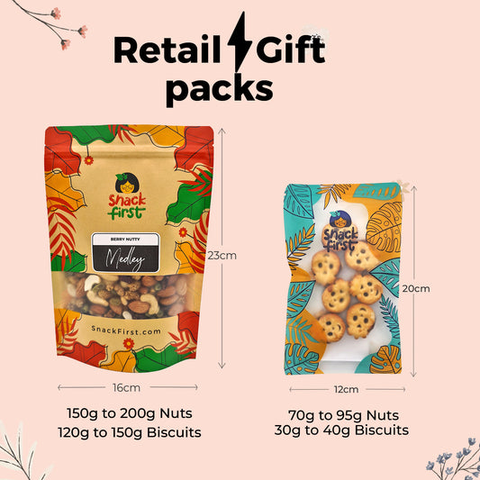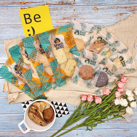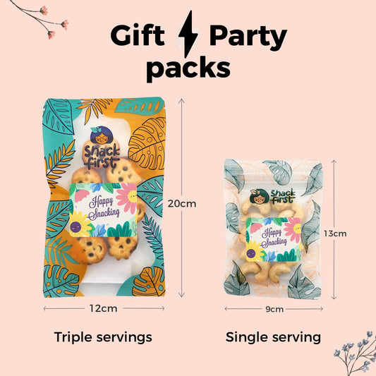 Loose snacks are packed in resealable pouches for ease of snacking, and heat sealed to keep in the freshness!