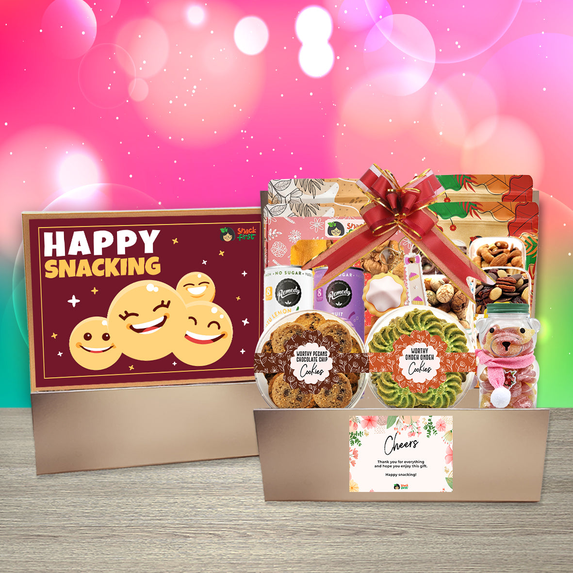 现在,有了我们的零食礼盒,您就能实现!所有零食均为订单新鲜包装,可定制,并在礼盒内附上一张特别小纸条。这款礼盒采用磁吸式设计,可从顶部打开。它是送给任何人的完美礼物,而且最重要的是,他们还可以分享零食!